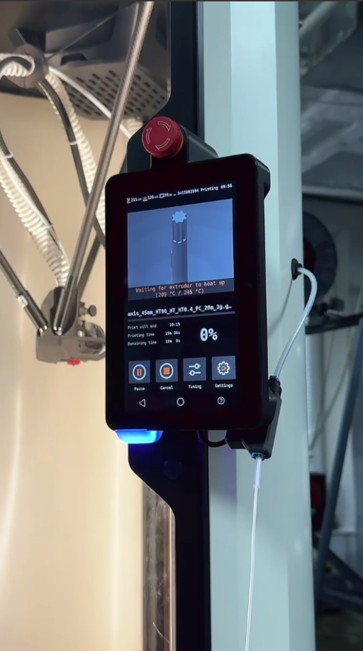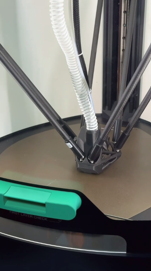 На відміну від багатьох CoreXY або декартових принтерів, у HT90 надрукований об’єкт залишається нерухомим, а рух екструдера керується скоординованою роботою трьох легких важелів. Це допомагає отримувати плавний і точний друк з мінімумом артефактів на поверхнях, особливо на високих швидкостях.
