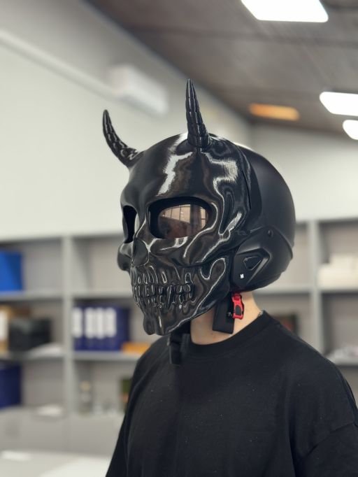 Ми перетворили стандартний аксесуар на шолом з характером: індивідуальний дизайн, преміальний фініш і надійність у використанні. Клієнт отримав унікальний виріб, що виділяється візуально та зберігає функціональність.