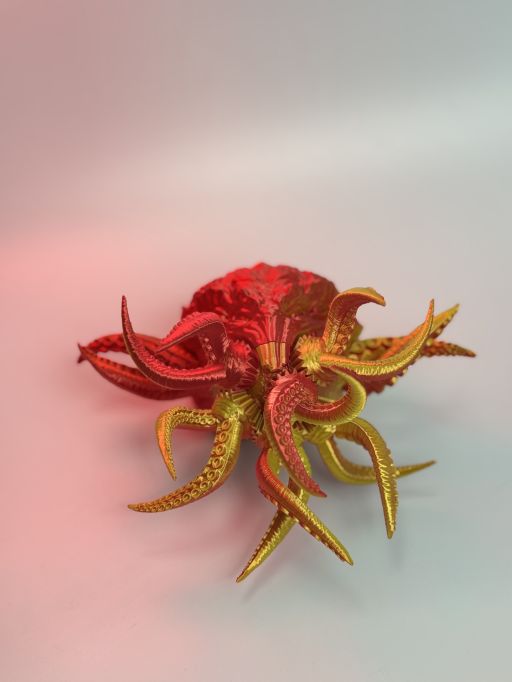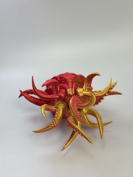 Printed using Magic SILK PLA, a dual-color filament with a shimmering effect, the piece reveals different оттенки depending on the angle and lighting.