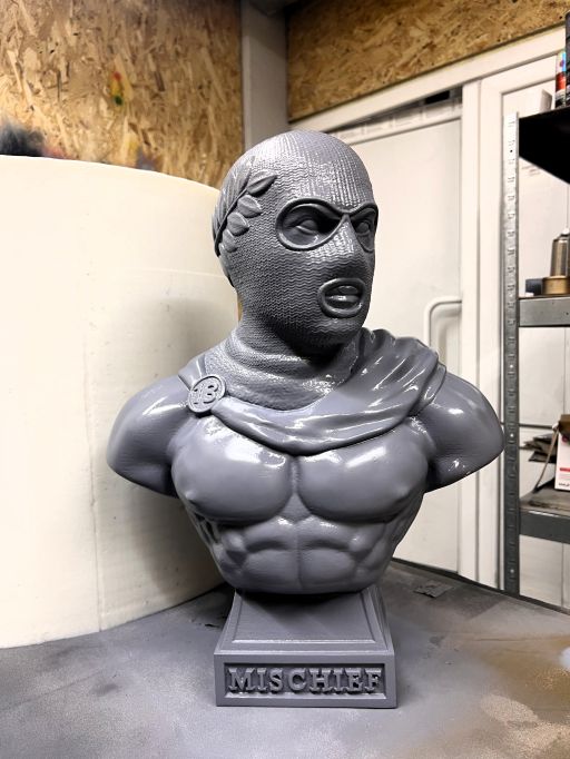 Спершу ми здійснили 3D-моделювання бюста. Наступний етап – FDM друк майстер-моделі та опалубки. Підготували майстер-модель до лиття. Реалізували силіконовий молд під лиття гіпсу. Ну і фінальний етап: здійснили тестову заливку гіпсу, щоб переконатись у точності форми.