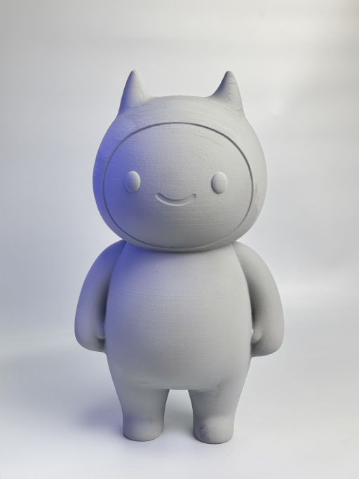 Ми виконали 3D-моделювання персонажа, підготували модель до друку та надрукували її методом FDM 3D-друку. Щоб досягти гладкої поверхні без виражених слідів шарів, провели постобробку із заливкою рідкою шпаклівкою. Такий підхід дозволяє вирівняти дрібні нерівності, підсилити візуальну якість та підготувати деталь до фарбування або формування молдів.
