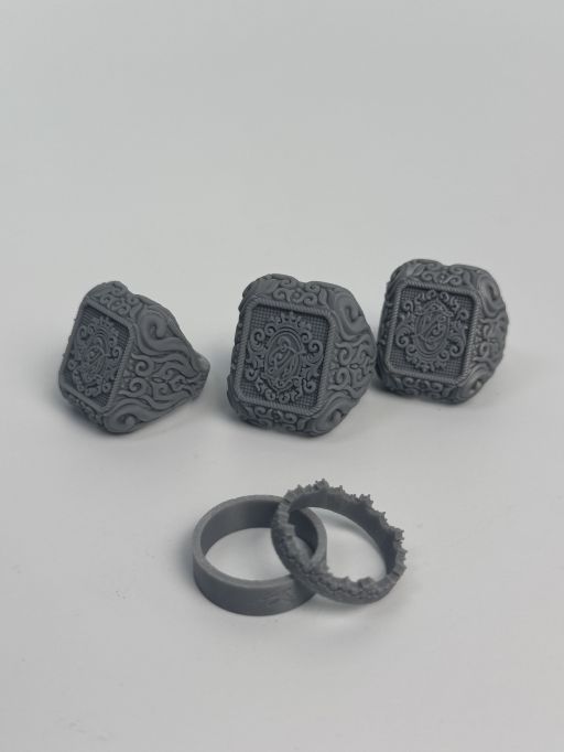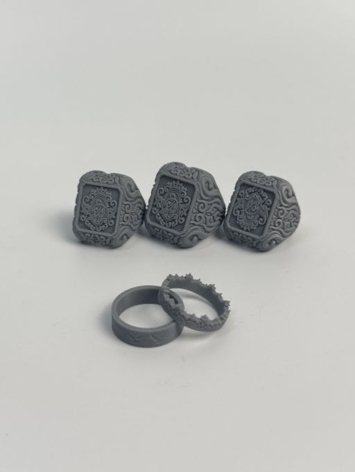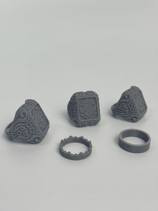 Для нашого клієнта ми виготовили ювелірні прототипи перснів, використовуючи технологію фотополімерного 3D-друку. Цей метод дозволяє досягти максимальної точності та відтворити навіть найдрібніші деталі, повністю ідентичні 3D-моделі.