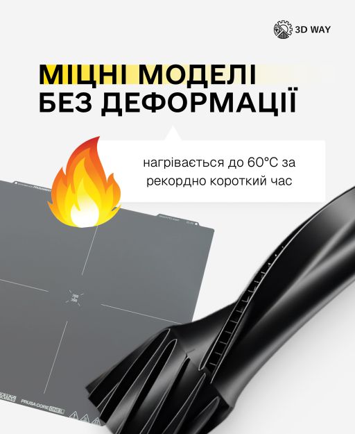CORE One L розв’язує найбільшу проблему широкоформатного друку – нестабільне нагрівання. З цим принтером – жодних холодних кутів чи деформації. Більшість принтерів нагріваються нерівномірно, але цей — ні. Двоконтурний нагрівальний елемент рівномірно розподіляє тепло по всій поверхні.