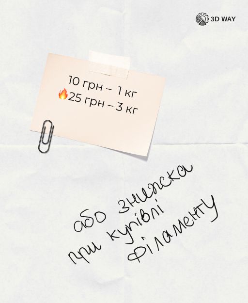 Або знижка на купівлю філамента у 3DWAY (дорівнює сумі за котушки).
