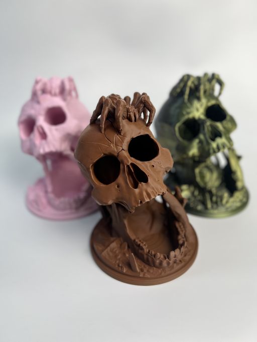 Вежі для дайсів у формі черепа з павуком — стильний аксесуар для ваших настілок, який не лише робить кидки видовищними, а й додає +100 до атмосфери до кампанії.